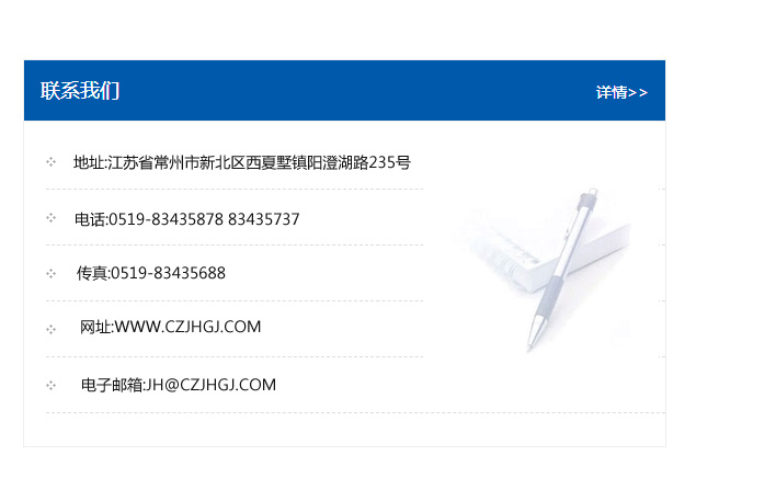 傳真:0519-83435688    郵編:213135    網址:WWW.czjhgj_com.hssypj.com    電子郵箱:JH@czjhgj_com.hssypj.com